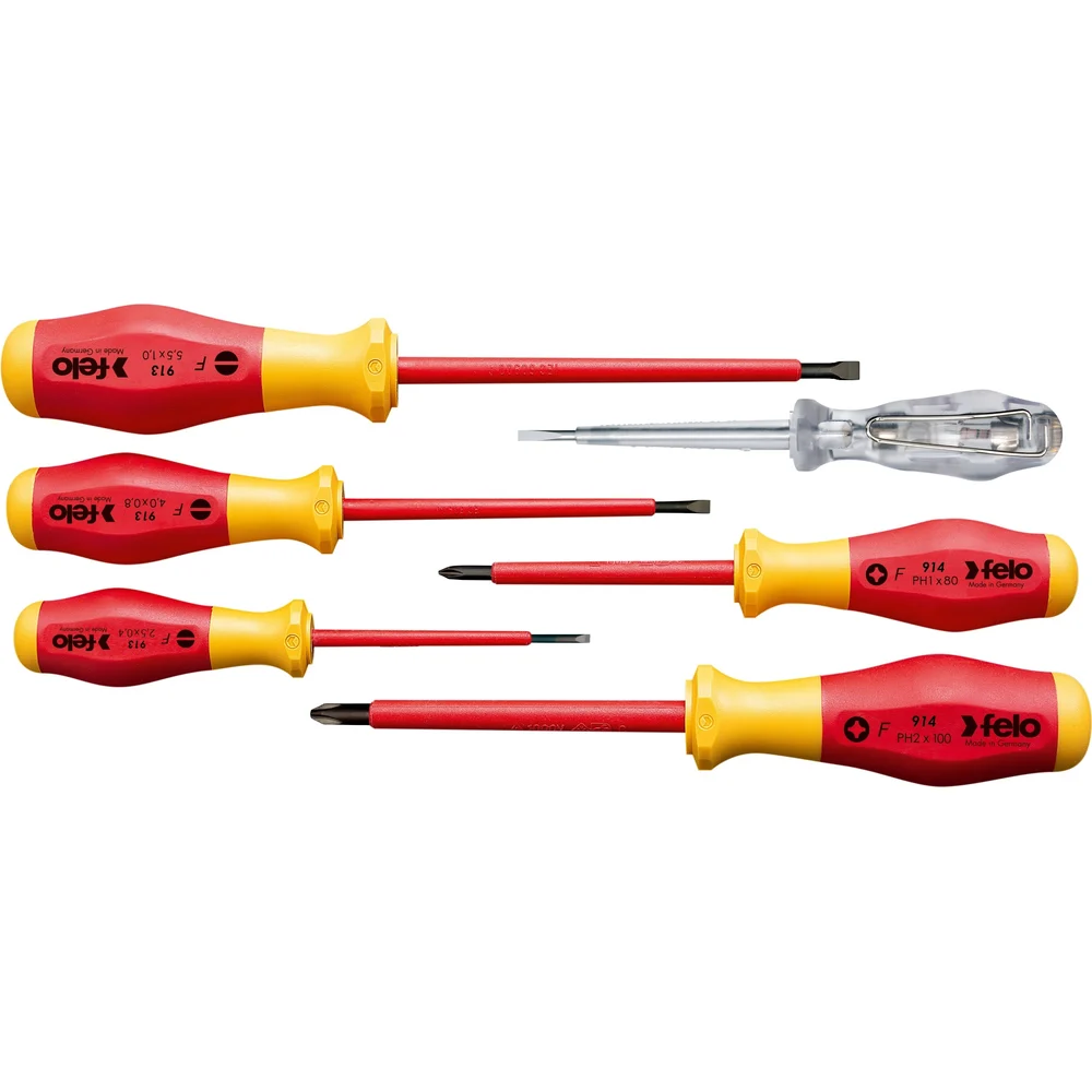 Набор диэлектрических отверток Felo SL/PZ, отвертка тестер сети, 6 шт 91396198 — детальное фото